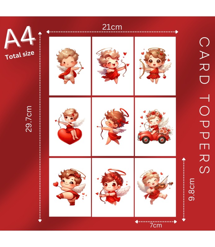VALENTINE CHIBI #2 CUPID LOVE HEART CARD TOPPERS |VAL-00006